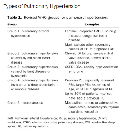 Dr. Weingart then goes through the types of pulmonary hypertension: