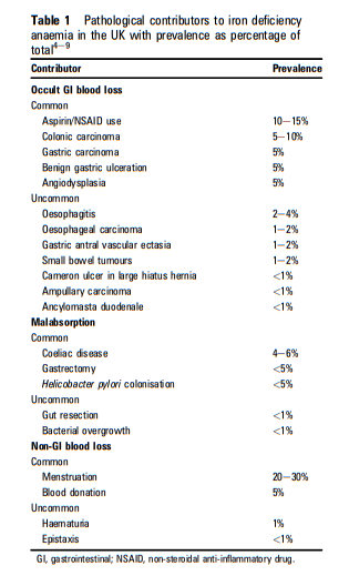 (1) Guidelines for the  management of iron deficiency anaemia [PubMed Abstract] [Full Text HTML] [Full Text PDF]. Gut. 2011 Oct;60(10):1309-16. doi: 10.1136/gut.2010.228874. Epub 2011 May 11.