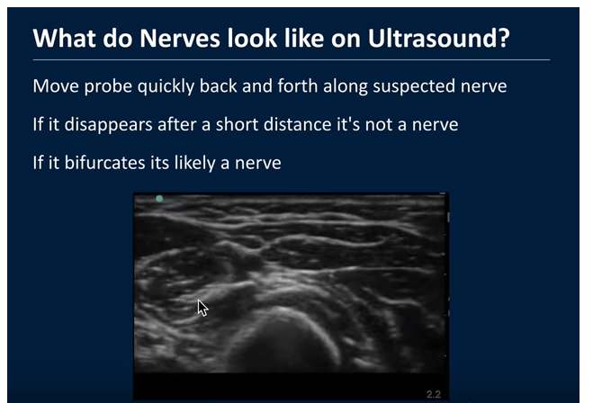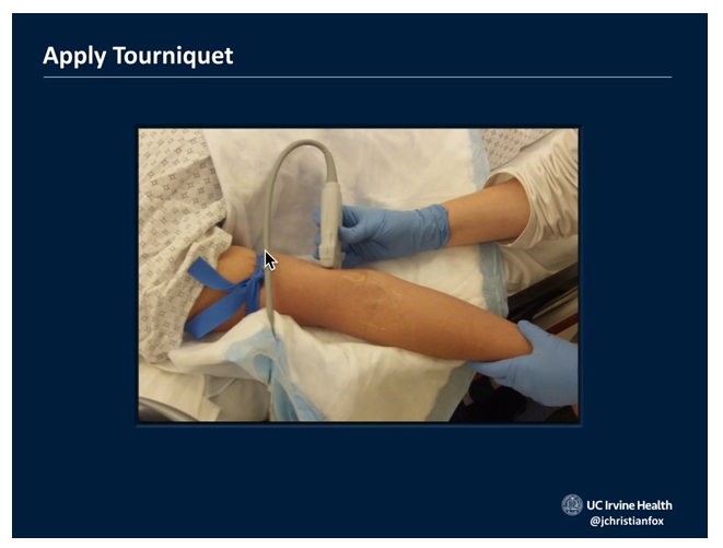 You’ll start at the antecubital fossa and scan down the forearm remembering that you want to put the IV in as distal as possible.