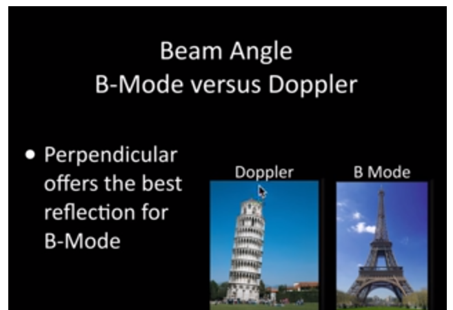 The image below is of why we don’t use the in-plane technique. The reason is that if you are off axis even a little bit you won’t know where the tip is. And also remember that the sound beam is only one millimeter wide.