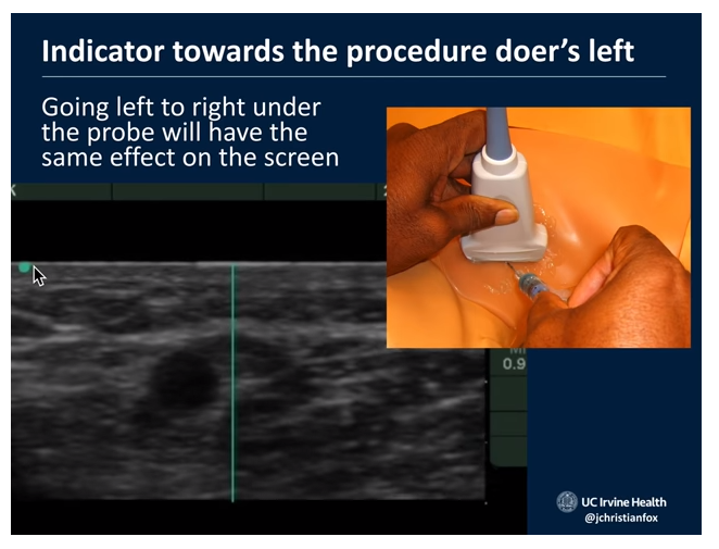 [And this (the above)] is why it is important that the indicator [dot on the probe] should always be towards your left for any procedure.