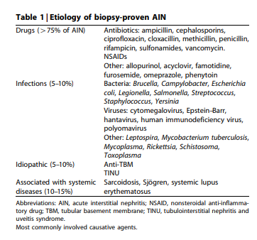 to other causes of renal injury.As shown in Table 1, the main causes of AIN can be