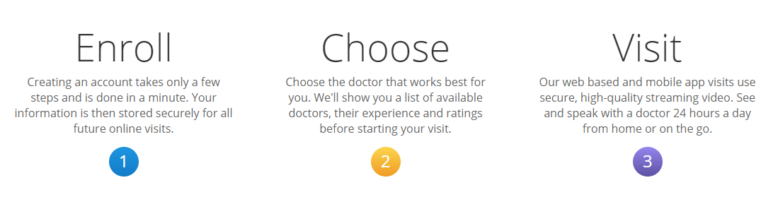 In this post I will look at the telehealth service Amwell – “Have an online visit in minutes using your computer, tablet, or phone.” What follows is from the Amwell website: