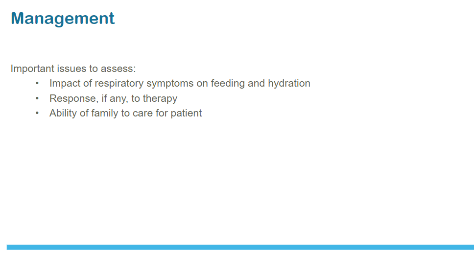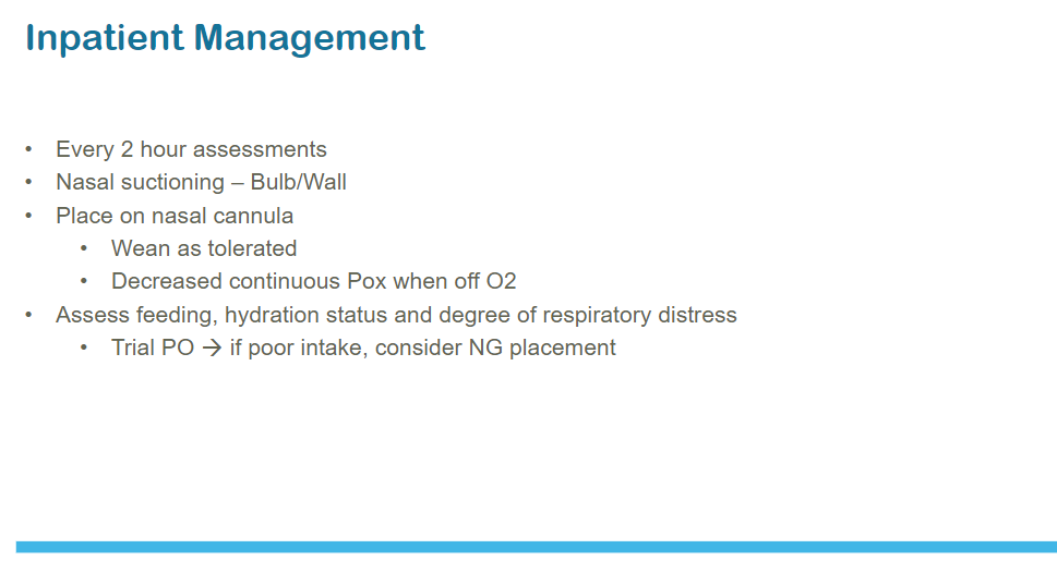 (1) Clinical Practice Guideline: The Diagnosis, Management, and Prevention of Bronchiolitis [PubMed Abstract] [Full Text HTML] [Full Text PDF]. Pediatrics. 2014 Nov;134(5):e1474-502. doi: 10.1542/peds.2014-2742.