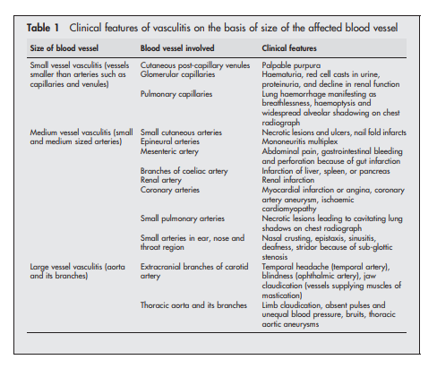 The following post contains excerpts from Resource (1) below, Diagnostic approach to patients with suspected vasculitis [Pubmed Abstract] [Full Text HTML] [Full Text PDF]. Postgrad Med J. 2006 Aug; 82(970): 483–488: