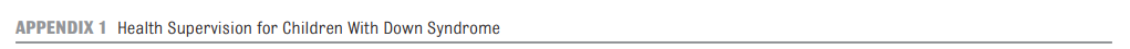 Next, review the 2011 guideline Health Supervision for Children With Down Syndrome from AAP. Here are some excerpts from the article [But read the whole article as it helps to reinforce the lecture above]: