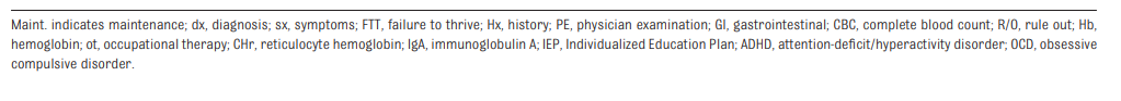When recording the history from the parents of a child with Down syndrome, the clinician should include the following [19] :