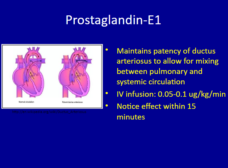 Protocol for use of prostaglandin E from The Iowa Neonatology Handbook.