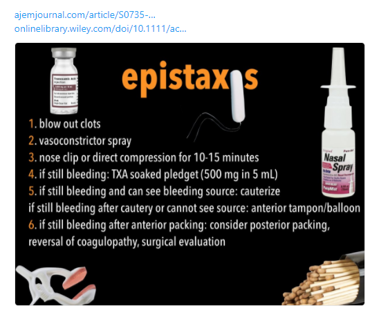 Dr. Reuben Streyer tweeted this chart on the treatment of epistaxis:
