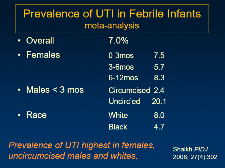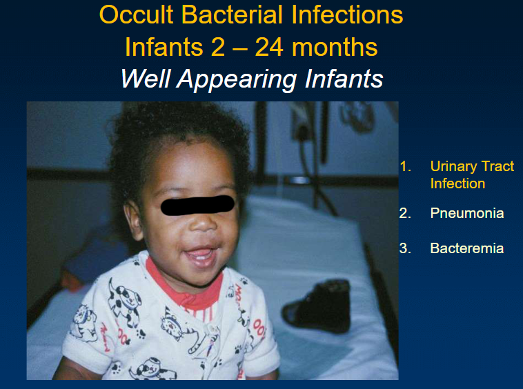 So here are some of the slides and lecture notes from Evaluation Of The Well Appearing Febrile Infant From CHOP – Part 2 Of 4 – 2 to 24 Months – Occult Bacterial Infections – UTI: