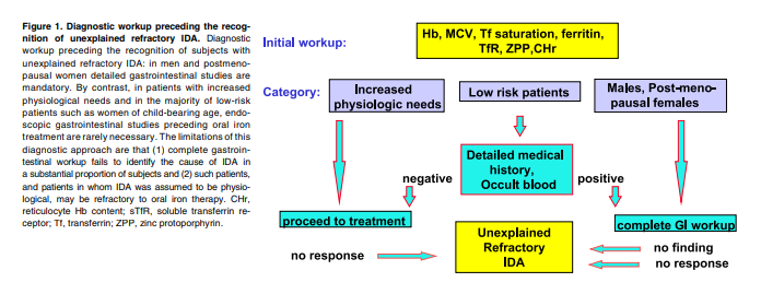 (1) How I Treat Unexplained Refractory Iron Deficiency Anemia [PubMed Abstract] [Full Text HTML] [Full Text PDF]. Blood. 2014 Jan 16;123(3):326-33. doi: 10.1182/blood-2013-10-512624. Epub 2013 Nov 8