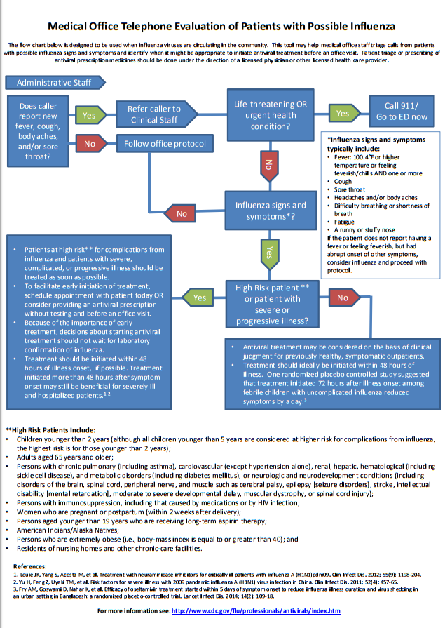 (1) Medical Office Telephone Evaluation of Patients with Possible Influenza from the Centers For Disease Control (HTML) (PDF)