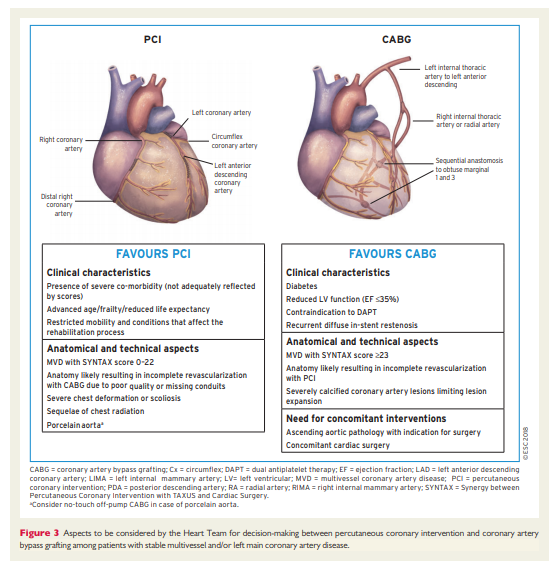 (2) Considerations for the choice between coronary artery bypass grafting and percutaneous coronary intervention as revascularization strategies in major categories of patients with stable multivessel coronary artery disease: an accompanying article of the task force of the 2018 ESC/EACTS guidelines on myocardial revascularization] [PubMed Citation – Abstract Not Yet Available] [Full text of the article is available to nonsubscribers only by Purchase]. Eur Heart J. 2018 Aug 25. doi: 10.1093/eurheartj/ehy532. [Epub ahead of print].