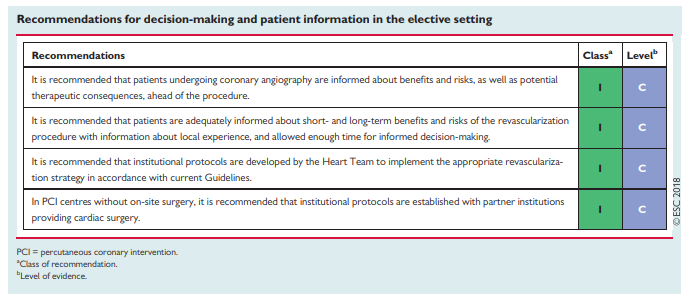 See Resource (1) below for direct links to the entire 2018 ESC/EACTS Guidelines on myocardial revascularization [which covers all the relevant clinical scenarios.