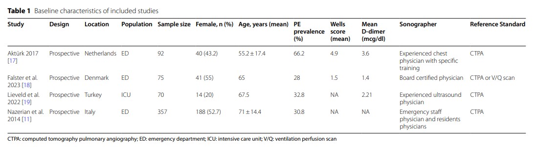 When CTPA is not feasible, point-of-care ultrasound (POCUS) has demonstrated its usefulness in clinical practice for ruling in or out PE. Each modality—lung ultrasound, leg vein ultrasonography and focused echocardiography—has been independently shown to be useful and accurate method for confirming the diagnosis of PE [7,8,9,10]. However, despite their utility in specific clinical settings, POCUS of each isolated organ system has relatively low sensitivity. As a result, none of these methods alone can reliably rule-out PE. The application of multi-organ POCUS, which combines lung, cardiac and venous ultrasound, has demonstrated increased diagnostic sensitivity for PE in some studies compared with single-organ approaches [11]. A recent meta-analysis [12] evaluated the accuracy of each organ ultrasound in diagnosing PE, but did not assess the performance of multi-organ POCUS approach. Therefore, we conducted a systematic review and meta-analysis on the accuracy of multi-organ POCUS for diagnosing PE in critical care setting.