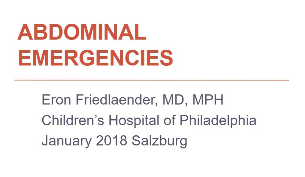 Today, I review, link to, and excerpt from the outstanding lecture and slide show, [Acute] “Abdominal Pain” [In Children]. Erin Friedlander, MD, MPH. Children’s Hospital Of Philadelphia, January 2018, Salzburg.