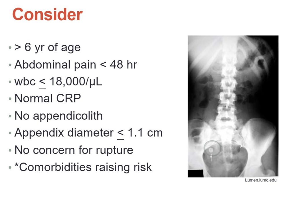 Fig 51: Who to consider for nonoperative treatment of uncomplicated acute appendicitis