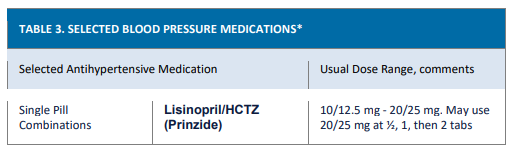 • Initial single pill combination therapy with lisinopril-hydrochlorothiazide is preferred. This may be used as initial therapy in all adults.