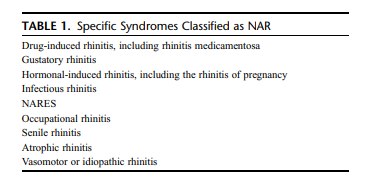 (1) Non-allergic rhinitis: Position paper of the European Academy of Allergy and Clinical Immunology [PubMed Abstract] [Full Text HTML] [Full Text PDF]. Allergy. 2017 Nov;72(11):1657-1665. doi: 10.1111/all.13200. Epub 2017 Jun 2.