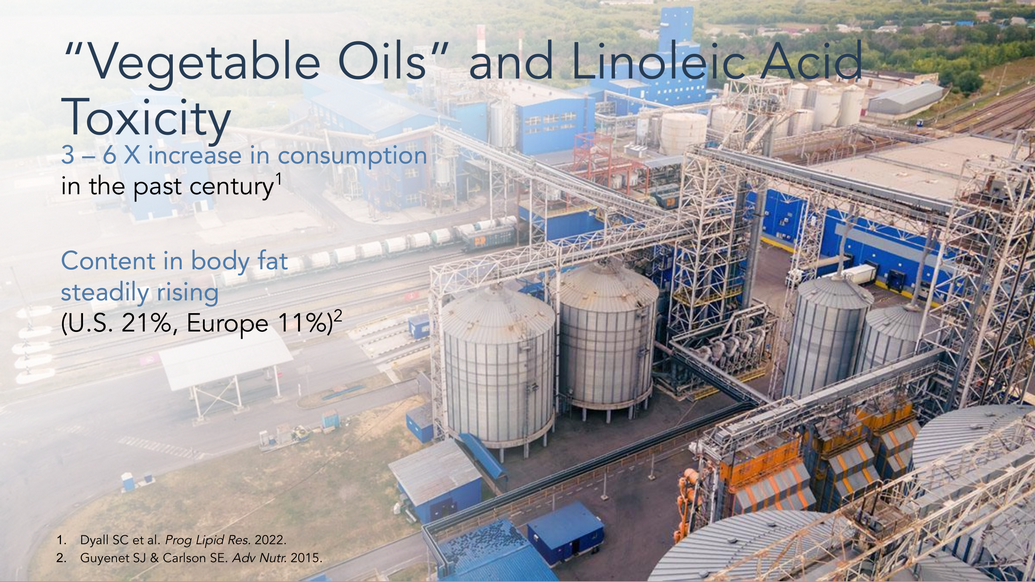 In her discussion of slide 16 Dr. Ede recommends avoiding refined vegetable oils and against linoleic acid toxicity.