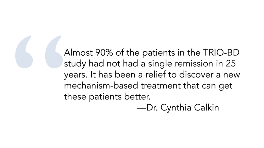 I asked Dr. Calkin what it meant to her, to see such a striking result. She told me that almost 90% of the patients in her study had not had a single remission in 25 years.