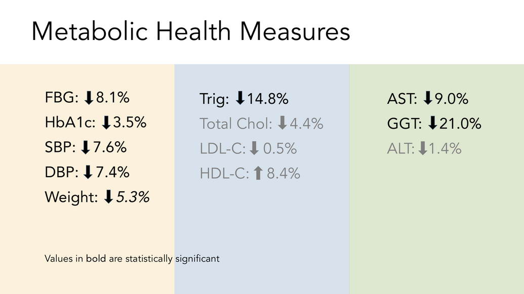 Ketogenic diets affect multiple markers of metabolic health. In our paper, the LDL didn’t change significantly, as is typical. Also typical, we saw dramatic drops in triglycerides. There was a nice lowering of serum glucose and significant weight loss, even though most of these patients were taking antipsychotic medications, which are notorious for causing stubborn and significant weight gain.