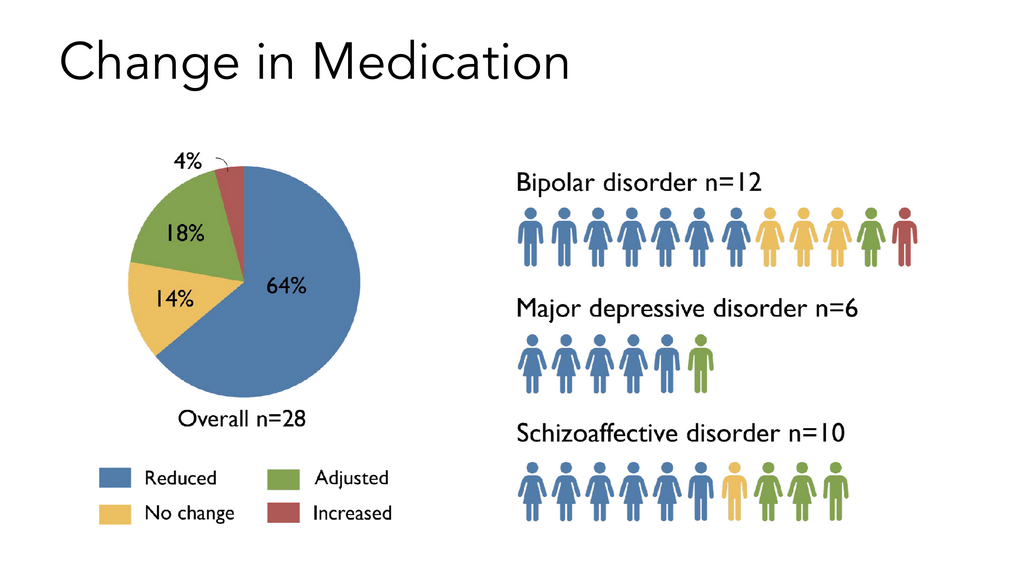 64% of patients were able to leave the hospital on less medication. As any of you know who work in this field, you do not see that in conventional inpatient psychiatric care. It’s usually exactly the opposite.
