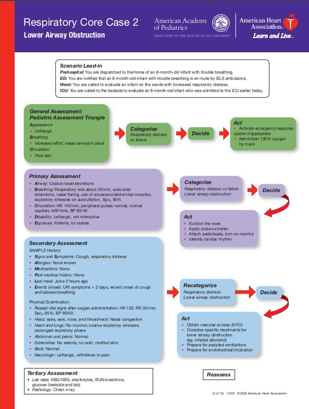 Here is the link to the 2006 PALS case studies. There are four respiratory core cases, four core shock cases, and four core cardiac cases. The case studies were on the 2006 PALS dvd. What follows is from that dvd.