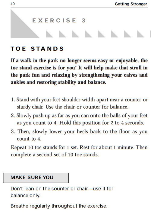 When you’re ready for Part II, please go to my post, Part II Strength Training – Stepping Up Your Strength – From “Strength Training For Older Adults From The CDC.