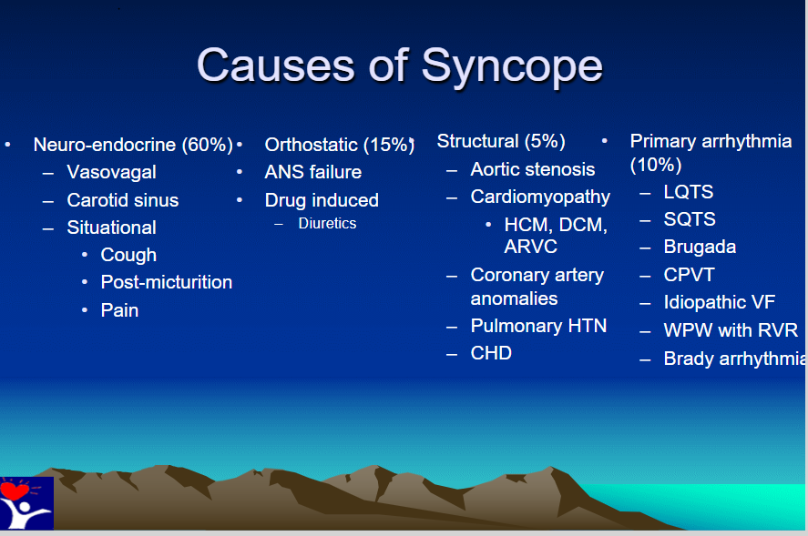 So the first set of causes, neuro-endocrine, account for 60% of syncope and are not life threatening except in certain circumstances (i.e., driving).