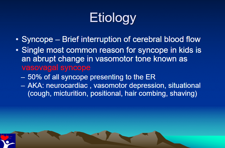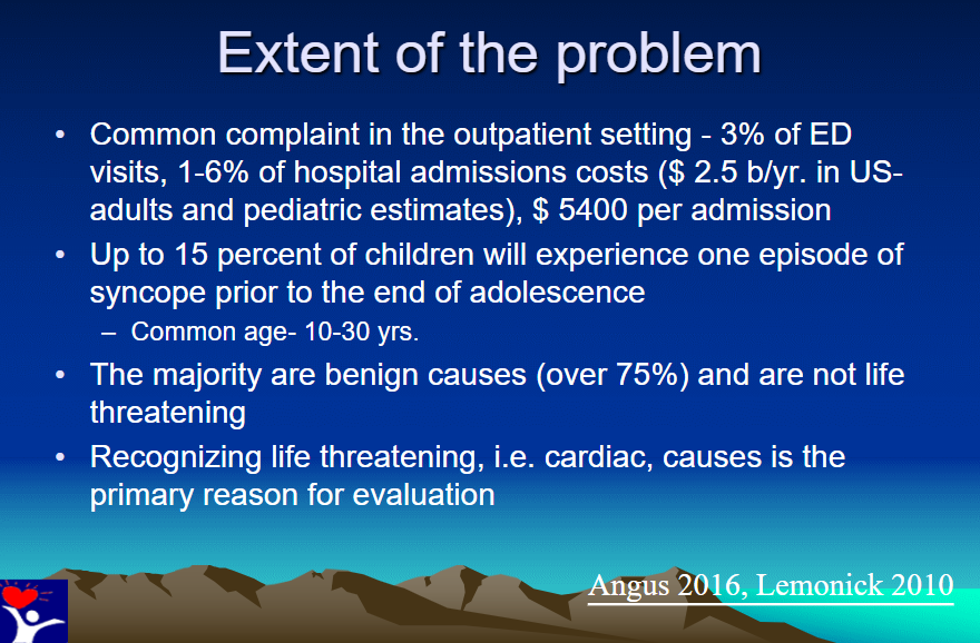 This post contains excerpts from Differentiating Benign From Malignant Syncope by V. Ramesh Iyer MD from the Children’s Hospital of Philadelphia (CHOP). The lecture is from CHOP’s Pediatric Cardiology Course. Dr. Iyer’s lecture was delivered in January of 2018, before the release of the release of the European Society of Cardiology’s 2018 Syncope Guidelines. I’ve included links to those guidelines in Additional Resources after the post.