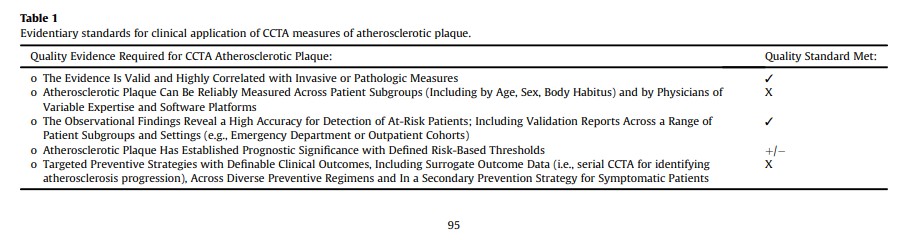 well as quantitative atherosclerotic plaque assessment. However, at present, in the absence of validated tools for quantitative assessment, we recommend integration only of semi-quantitative measures of atherosclerotic plaque into clinical reporting and propose data elements that radiologists and cardiologists can integrate into their CCTA interpretations today. While they remain incompletely defined at present, the field is evolving rapidly. The current quality standards for evidence are detailed in Table 1.