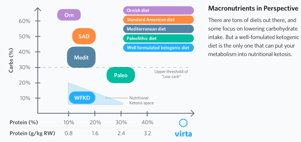 Here is a graph from Vita Health detailing the different kind of diets (note that the Vita Diet is is simply a low carbohydrate ketogenic diet.*